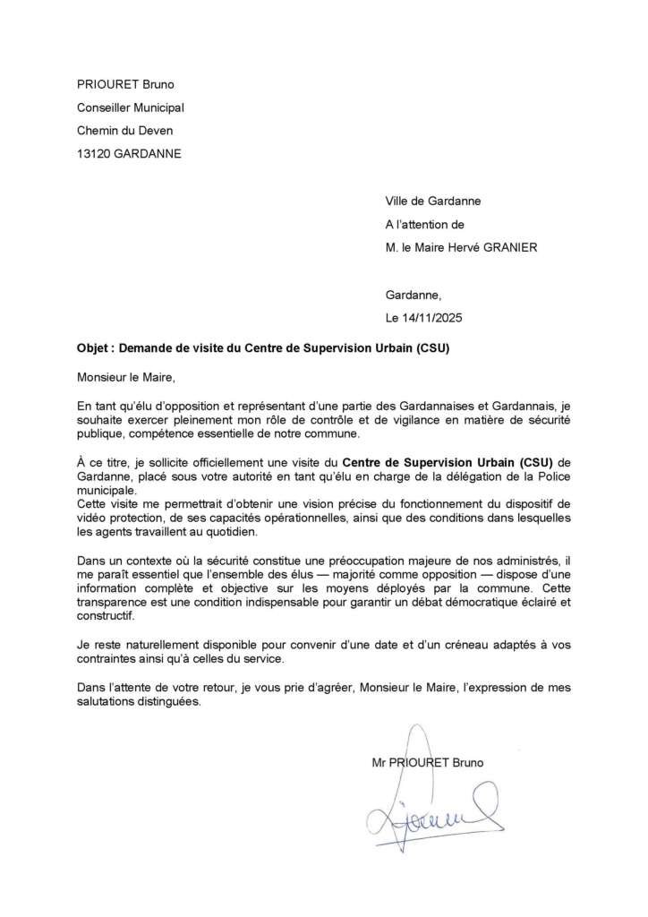Nous restons disponibles pour convenir d'une date et d'un créneau, dans l'attente d'une réponse favorable de Monsieur le Maire. La sécurité de Gardanne mérite le sérieux et la transparence de tous ses élus.